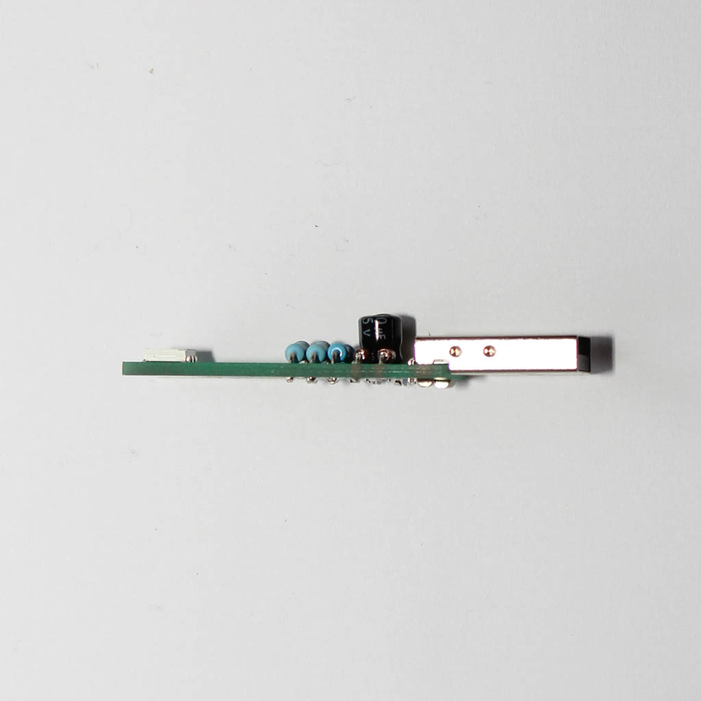 Solder the electrolytic capacitor C1. Capacitors have polarity and the longer pin is positive. The negative pin is displayed on the board with a minus sign next to it.